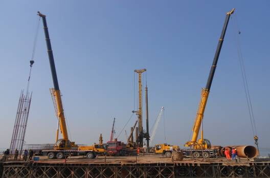 開工日期:2013年8月26日,竣工日期:2014年6月14日。寧高主橋樁基工程,施工合同任務為216-219號四個主墩,樁徑為1.8m、2.0m兩種,有效樁長為50m-73m,設計孔深62m-89m的鉆孔灌注樁共計78根,合同工作量13762m³。第二個施工合同任務為引橋樁基直徑1m的樁160根,有效樁長24-40m,直徑1.25m的樁31根,有效樁長27-35m,直徑1.6m的樁27根,有效樁長43-45m,直徑1.8m的樁33根,有效樁長30-45m。