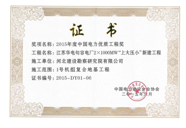 近日,我公司參建的江蘇華電句容電廠2×1000MW“上大壓小”新建工程獲得2015年度中國電力優(yōu)質工程獎。