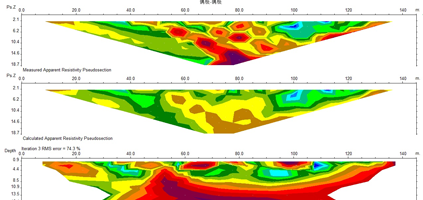 項目除了采用地質調查測繪、鉆探、井探、常規巖土試驗和巖石剪切試驗外,還采用了瑞雷波勘探和高密度映像物探手段,根據物探結果并結合鉆探資料客觀的分析了覆蓋層厚度、滑體的空間分布特征及基巖表面破碎程度,得到全面真實的滑體空間分布特征。