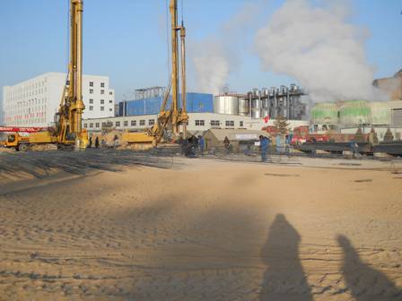 該工程施工種類較多,主要包括旋挖鉆孔灌注樁、灰土擠密樁和商品混凝土。我公司共完成旋挖鉆孔灌注樁樁基工程共完成1604根,施工了樁徑800mm的樁基667根,其中旋挖擴(kuò)底的114根,后壓漿施工的297根;樁徑1000mm的樁基937根,其中旋挖擴(kuò)底的58根,后壓漿施工的779根,設(shè)計(jì)混凝土方量20614.24方,樁身混凝土強(qiáng)度等級(jí)為C25和C30。樁孔直徑Φ400mm,樁長6.0m,樁距1m,正方形布置的灰土擠密樁共完成2312根,樁孔直徑Φ400mm,完成延米15028m。