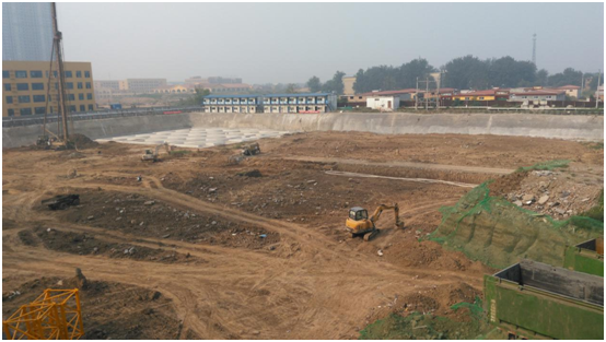 本工程于2014年5月25日開(kāi)始施工,2017年8月15日完成全部施工內(nèi)容,施工期間參建人員32人,投入錨桿機(jī)、深層攪拌樁機(jī)、打井機(jī)等設(shè)備共6臺(tái)。完成土釘墻5038㎡、降水管井1286延米、深層攪拌樁6231延米、設(shè)計(jì)專(zhuān)家論證一項(xiàng)及后期降水維護(hù)。