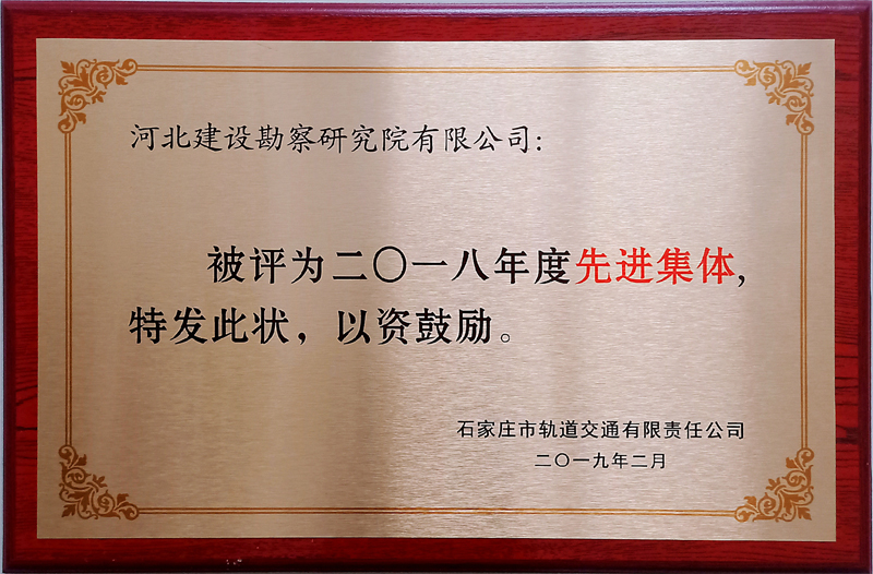 我公司作為石家莊地鐵監測服務單位,在監測過程中,精心組織設計、安全文明施工,積極與業主和相關單位溝通協作的工作作風贏得了業主的高度認可;在大會上石家莊市軌道交通有限責任公司對我公司和個人進行了表彰,特授予我公司“二零一八年度先進集體”榮譽獎牌,并授予我公司曹崇、張樹森、李延彬同志“先進個人”榮譽稱號。石家莊軌道交通有限責任公司希望我公司一如既往、繼續發揚優良工作作風,并希望在今后的工作中,繼續與我公司攜手合作,再創佳績!