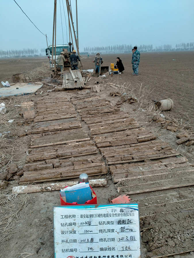 受河北省震災風險防治中心委托,我公司承擔了雄安新區起步區部分場地勘察工作。項目部通過合理的資源調配及部署,圓滿的完成了本次勘察任務。勘察采用了現場鉆探、原位測試、室內試驗、動力參數測試相結合的方法,查明了新區起步區的地層空間分布,對場地的場地類別,地震液化情況進行了分區。并提供了場地土層的地震動參數,為地震三維建模計算提供了科學可靠的數據。