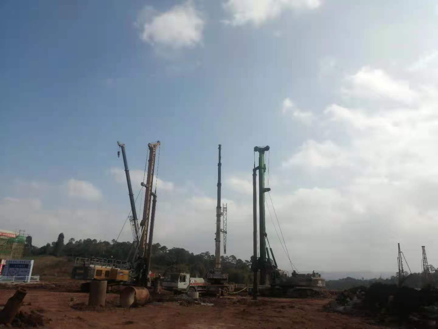 本工程于2020年09月28日開工,至2021年2月3日完工,歷時129天,保質(zhì)、保量、安全完成全部施工任務(wù)。在施工過程中,根據(jù)勘察報告及超前鉆報告,樁基施工存在較多溶洞;同時根據(jù)施工圖紙要求,承臺樁樁長差不能超過樁間距,最小樁長6米,地質(zhì)情況特殊,個別孔需施工巖層2~10米,施工難度大。針對工程特點,采用了帶合金條、合金豆等多種截齒進行施工,較高效率的完成了施工任務(wù),保證了工程質(zhì)量,并確保無任何安全生產(chǎn)等事故。