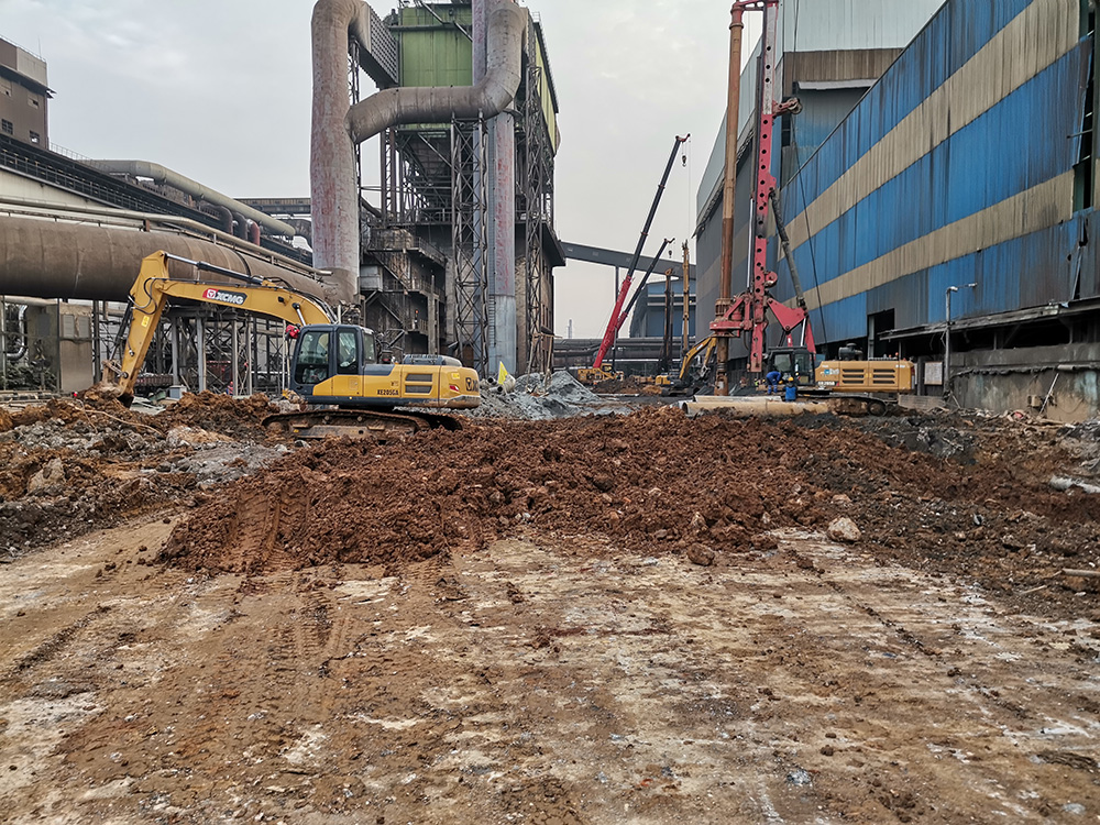 本工程位于湖南省湘潭市岳塘區(qū),分為寬厚板廠和燒結(jié)兩個區(qū)域。受湖南華菱湘潭鋼鐵有限公司委托,我公司承擔本項目樁基施工。工作內(nèi)容主要包括所有樁基工程成孔、混凝土澆筑、鋼筋籠的制作安裝等。其中φ600mm旋挖成孔灌注樁262根,φ800mm旋挖成孔灌注樁1399根,φ900mm旋挖成孔灌注樁24根,理論工程量14307m。