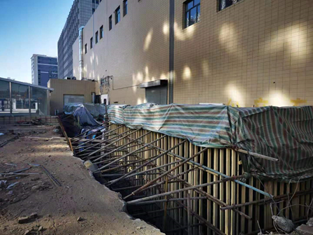張家口世博店室外疏散樓梯改造工程位于于張家口市,由家家悅集團股份有限公司進行投資,施工內容包括土方開挖、鋼筋混凝土主體結構、鋼結構樓梯、裝飾裝修工程、墻體開洞等,其中開挖土方共計3091m³;地下樓梯間為鋼筋混凝土結構,兩個樓梯間筏板共115m³。每個樓梯間四周布置鋼筋混凝土柱10根,柱截面尺寸為500mm*500mm。樓梯間四周布置剪力墻,剪力墻厚300mm,高5.25m,長55.6m;鋼結構樓梯4座;墻面開洞6個,開洞面積30.24㎡。
