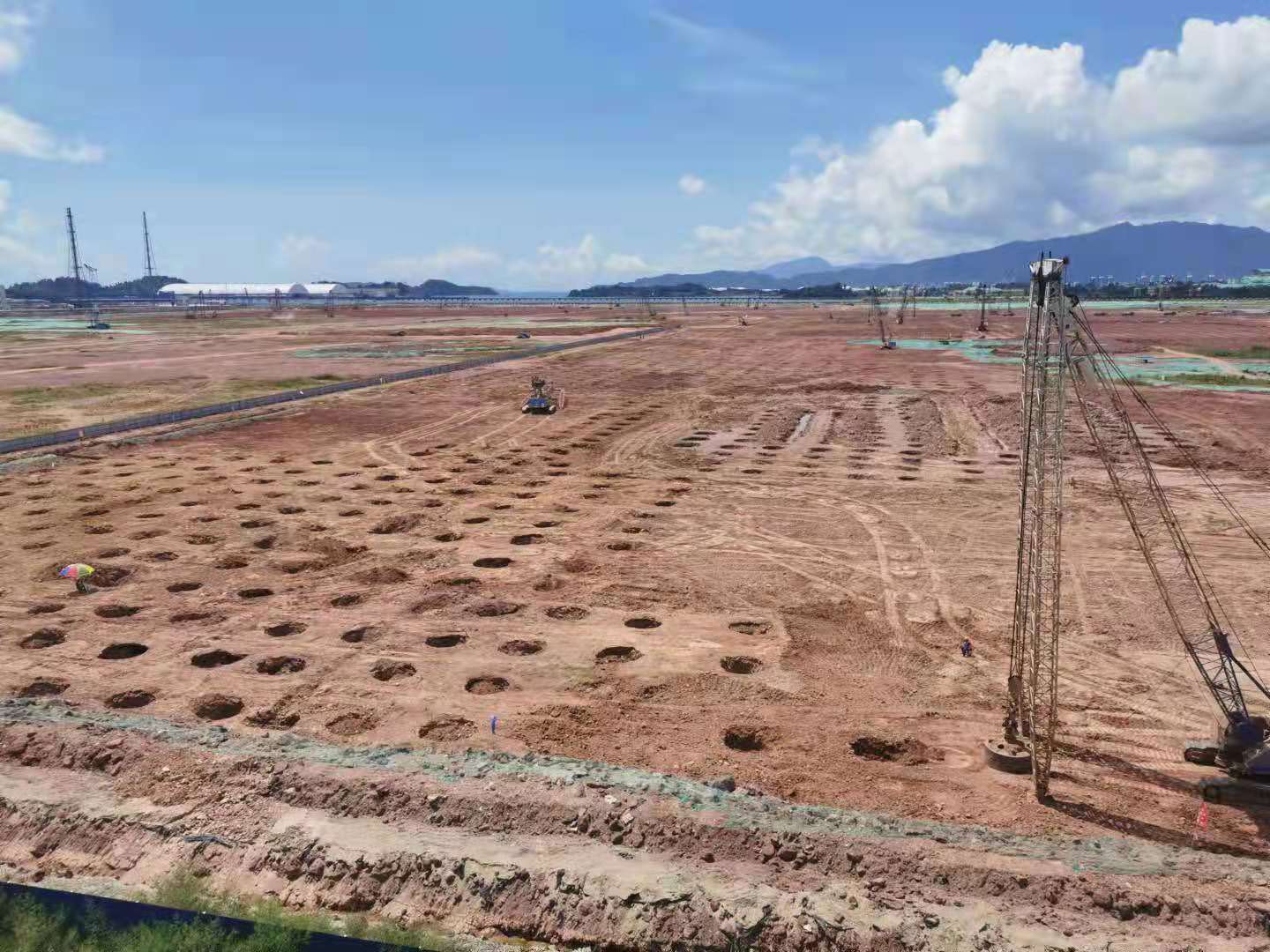 本工程位于廣東省惠州市。受埃克森美孚(惠州)化工有限公司委托,我公司承擔強夯施工項目。本項目主要施工內容為現場夯點的布置、現場夯點的測放、夯機的就位、夯坑的驗收及夯坑的回填、滿夯的控制、滿夯后整個場地的整平及驗收。其中4000KN·m強夯面積27866㎡,6000KN·m強夯面積334533㎡,8000KN·m強夯面積32090㎡。