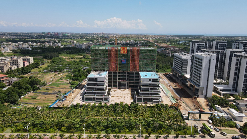 海南辦公樓占地面積15畝,地下二層,地上12層,總建筑面積47527平方米。工程自2021年9月13日現(xiàn)場(chǎng)舉辦開(kāi)工儀式以來(lái),經(jīng)過(guò)11個(gè)月的合力攻堅(jiān),克服高溫、臺(tái)風(fēng)、疫情等重重難關(guān),如期實(shí)現(xiàn)了一個(gè)個(gè)關(guān)鍵節(jié)點(diǎn):2021年10月25日第一根基礎(chǔ)工程樁混凝土灌注順利完成;2021年12月4日開(kāi)始8萬(wàn)方土方開(kāi)挖的任務(wù);2022年1月29日,實(shí)現(xiàn)了基礎(chǔ)筏板的澆筑;2022年4月10日,完成了地下二層車庫(kù)施工,主體如期“沖”出正負(fù)零;2022年6月24日,東、西配樓主體按計(jì)劃日期封頂。如今項(xiàng)目迎來(lái)了主體封頂?shù)睦锍瘫瑸楹笃诠こ虡?shù)立了標(biāo)桿!