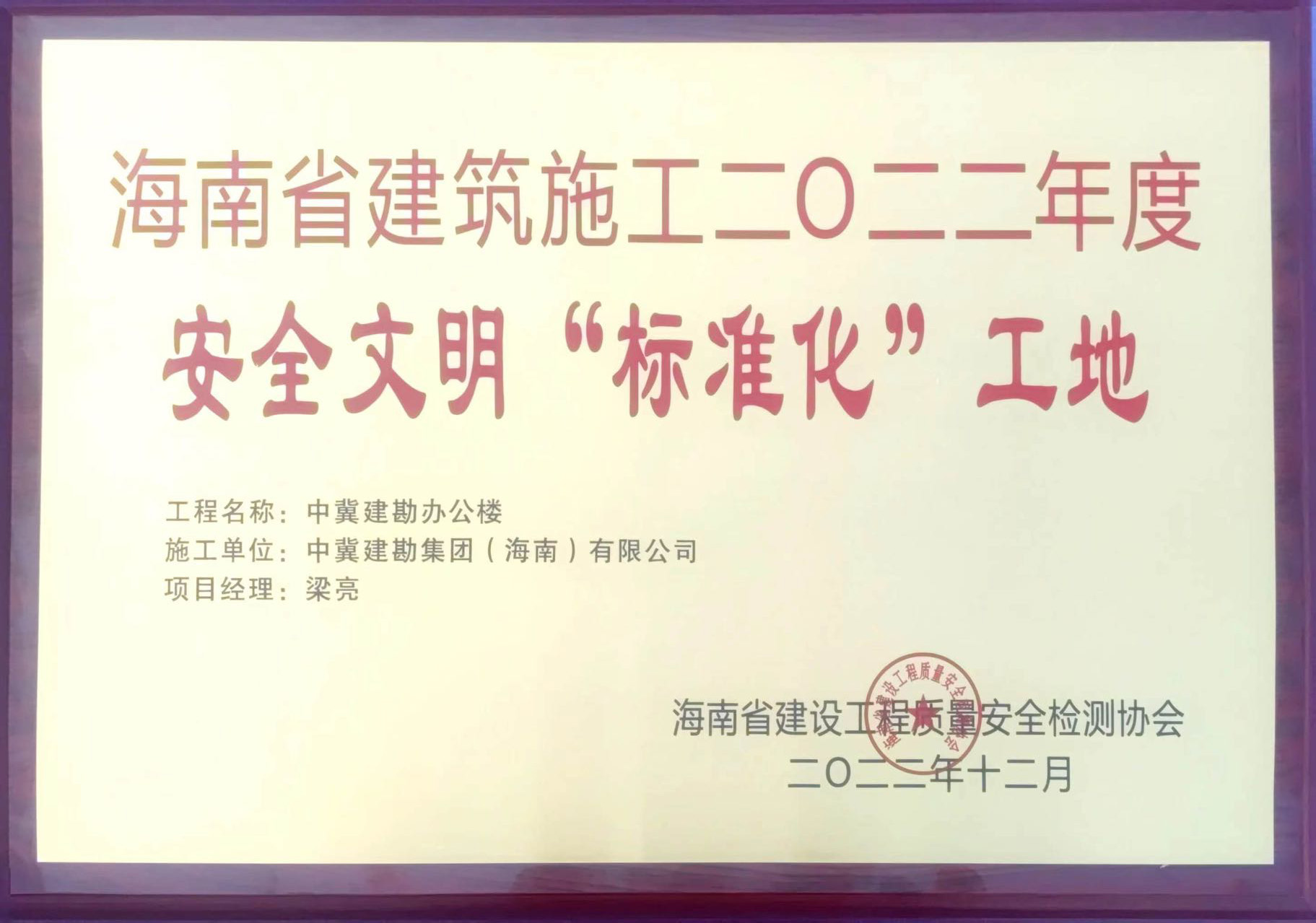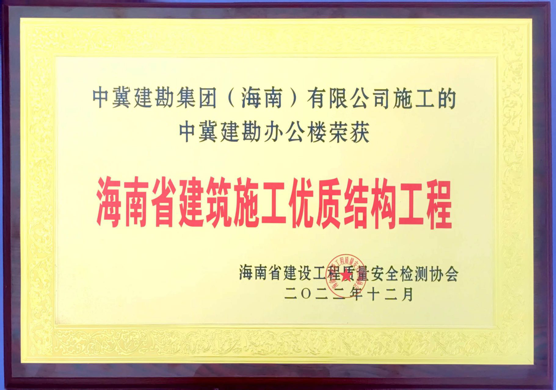 中冀建勘辦公樓榮獲“海南省建筑施工優質結構工程”及海南省建筑施工二0二二年度安全文明“標準化”工地榮譽稱號