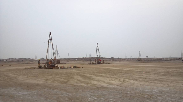 一期勘探孔451個,總進尺17351m;二期勘探孔475個,總進尺18310m??碧竭^程中采用了鉆探、靜力觸探、標準貫入試驗、波速測試、電阻率測試等多種方法。根據現場揭露的土層和建設單位提供的建筑物結構型式、基礎形式、基礎埋深、地基基礎方案等,對可能的天然地基、復合地基和樁基礎分別進行了分析及建議。